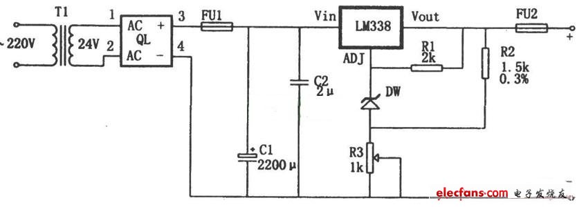 132LM317自適應(yīng)可調(diào)穩(wěn)壓電源電路圖