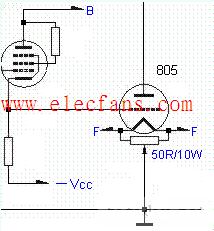同樣由于805柵流的變化,推動(dòng)級(jí)供電內(nèi)阻應(yīng)當(dāng)盡量低,采用晶體管整流比較適當(dāng)。另外應(yīng)當(dāng)選擇 u偏高,S偏大的推動(dòng)三極管 ,個(gè)人推薦采用 EL系列五極管接成三極管,例如EL34,EL84,此類五極管接成三極管作陰極輸出器,具有較低的輸出阻抗,可以較好的因?qū)?05輸入阻抗變化。