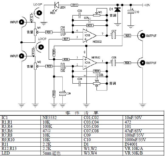 具有低音增強(qiáng)的立體聲前置放大器電路分享