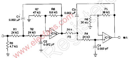 三階RC有源低通濾波器電路圖