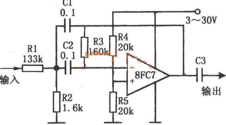 單電源低電壓帶通濾波器(8FC7)電路