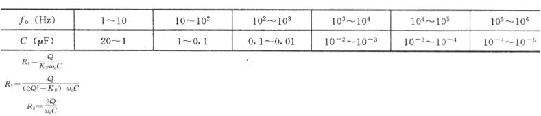式中ωo=2πf0。R4和R5給運(yùn)算放大器同相輸入端一個(gè)偏置電壓,C3是輸出隔直流電容。電路中各元件數(shù)值是在f0=100Hz、Q=5和KF=0.6的條件下計(jì)算出來(lái)的。