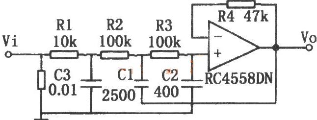 每倍頻程衰減-18dB的有源低通濾波器電路(RC4558DN