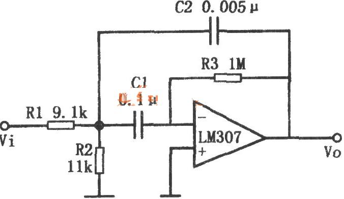 LM307組成的低Q值高增益帶通濾波器電路