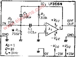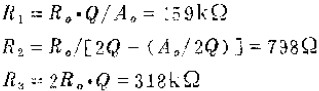 設(shè)C1=C2=C0,確定基準(zhǔn)電阻RO=1/2πFO.CO,Q等于中心頻率FO除以帶寬,即Q=FO/BW。