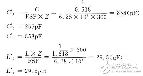 ?、苡脄=300和頻率變換系數(shù)FSF=2πf=6.28×to'對(duì)高通濾波器進(jìn)行去歸一化。