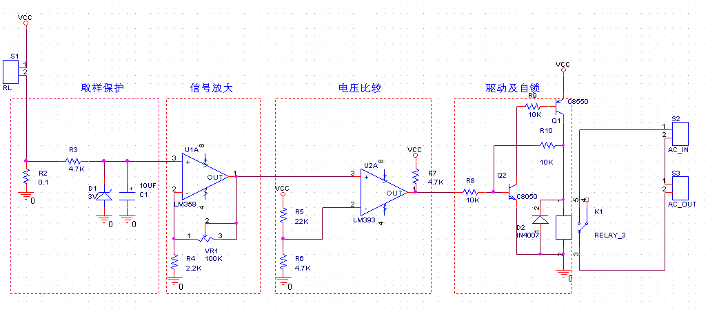 3.第三部分是一個比較器電路...放大器把取樣的信號放大...然后經(jīng)過這級比較...從而去控制后級的動作...是否切斷電源或別的操作...比較器是開路輸出.所以要加上上位電阻...不然無法輸出高電平...