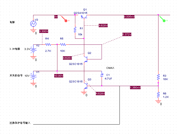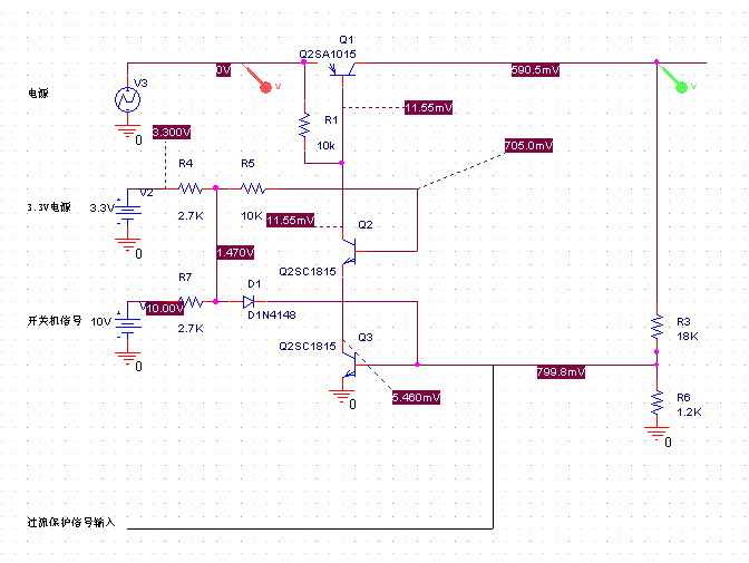 上電...Q2導(dǎo)通...Q3由開關(guān)機信號...經(jīng)C1后再導(dǎo)通...Q2 Q3全導(dǎo)通后.Q1才能導(dǎo)通...Q1導(dǎo)通后...Q3的B極電壓則由R3提供...達到穩(wěn)定的狀態(tài)...