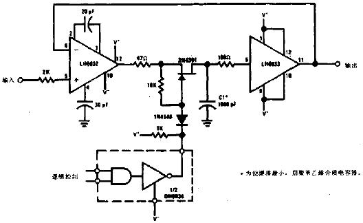 現(xiàn)在已有多種單片采樣保持電路的產(chǎn)品。圖5.4-72是單片采樣保持電路LF398。該電路在作為單位增益跟隨器使用時(shí),其DC增益精度為0.002%到0.01