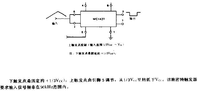 時基集成電路組成可變閾電平的施密特觸發(fā)器電路圖