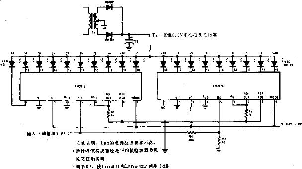 15 該電路采用兩個四以下(LM339)來照亮8顯示音量,LED串聯(lián)電壓比較器. 1 LED = 22mW 2 LEDs = 42mW 3 LEDs = 90mW 4 LEDs = 175mW 5