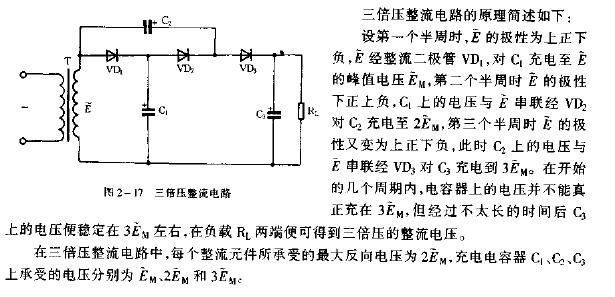 簡單整流電路:下面要介紹的簡單整流電路是三倍壓整流電路。