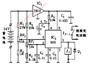 10875 NE555構(gòu)成的不間斷電源蓄電池電壓監(jiān)控器,NE555 Battery voltage monitoring circuit
