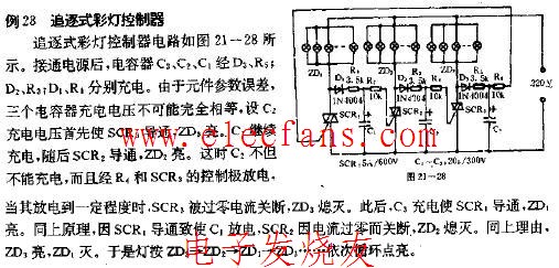 一種四花樣自動切換的彩燈控制器。其電路簡單、取材容易,無需調(diào)試。即使不懂電子技術(shù)