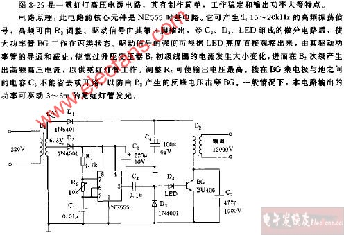 簡(jiǎn)易霓虹燈驅(qū)動(dòng)電路圖