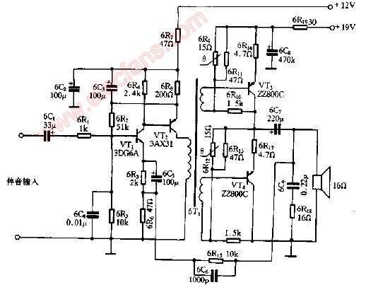 飛躍12D黑白電視機伴音OTL功放電路圖