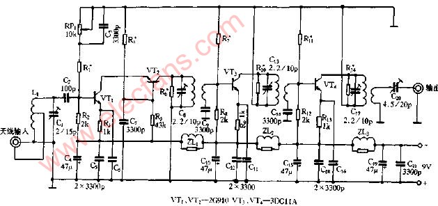 電視天線放大器電路圖,天線放大器在無(wú)線電視接收過(guò)程中起著非常重要的作用,弱信號(hào)通過(guò)它能顯著提高輸出電平,從而改善信雜比,使收到的電視圖像更為理想