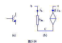 對(duì)三極管的線(xiàn)性化處理就是將三極管的輸入、輸出特性線(xiàn)性化。工作在小信號(hào)場(chǎng)合的放大器,在工作點(diǎn)附近因輸入信號(hào)的幅度很小,可用直線(xiàn)對(duì)輸入特性曲線(xiàn)線(xiàn)性化,經(jīng)線(xiàn)性化后的三極管輸入端等效于一個(gè)電阻rbe,輸出端等效于一個(gè)強(qiáng)度為βib的受控電流源,三極管線(xiàn)性化后的微變等效電路如圖5-14所示。圖5-14(a)是NPN三極管的符號(hào),圖5-14(b)是NPN三極管的微變等效電路圖。等效的理論依據(jù)請(qǐng)參閱附錄B的內(nèi)容。