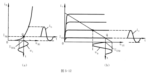 圖5-10(a)給出了三極管的輸入特性曲線(xiàn)和輸入信號(hào)的波形,圖5-10(b)為三極管的輸出特性曲線(xiàn)和輸出信號(hào)的波形。