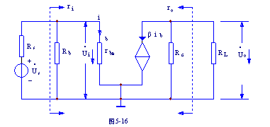 放大器的輸入電阻ri就是從放大器輸入端往放大器內(nèi)部看(圖中輸入端虛線(xiàn)箭頭所指的方向),除源后的等效電阻,除源的方法與前面介紹的一樣,即電壓源短路,電流源開(kāi)路。由圖5-16可見(jiàn),放大器的輸入電阻是Rb和rbe相并聯(lián)。即