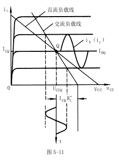 的直線(xiàn),該直線(xiàn)稱(chēng)為交流負(fù)載線(xiàn),如圖5-11所示。