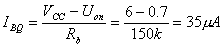 工作在放大區(qū)的硅管Ube=Uon=0.7V,將Ube的值代入可得IBQ為: