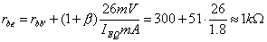 式中的rbb‘為三極管基極的體電阻,在題目沒(méi)有給出rbb‘的具體數(shù)值時(shí),可取rbb‘的值為300Ω,IEQ是發(fā)射極的靜態(tài)電流,該值為