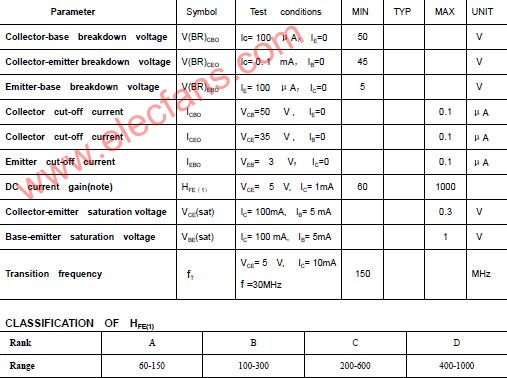 它是一種低電壓,大電流,小信號(hào)的PNP型硅三極管