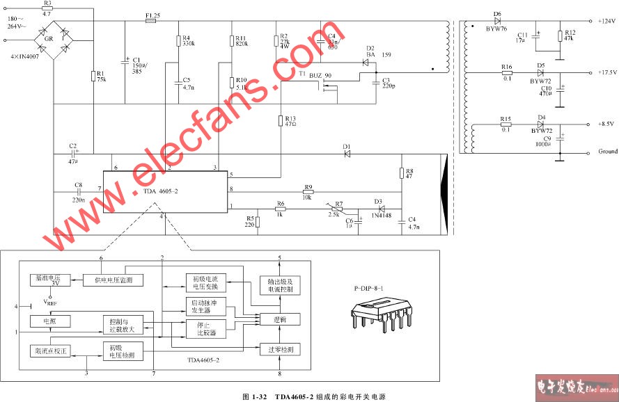概述:TDA4605-2場效應功率管驅動電路主要特性:其折迭返回特性對外部元件具有過載保護功能;對次級短路情況下具有突發(fā)脈沖工作功能;控制環(huán)開路或短路具
