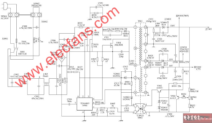 康佳T2909C、T2909C1、T2990C、T2966C、T2966C1、T2966C2、T2969C彩電開關(guān)電源電路