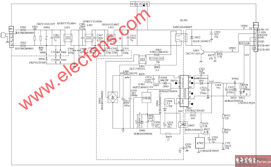 松下TH-65PHD8BK TH-65PHD8EK TH-65PHD8UK等離子彩電開關(guān)電源電路