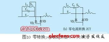 逆變器可以在很寬的輸入電壓范圍和負(fù)載電路范圍內(nèi)工作在軟開(kāi)關(guān)狀態(tài),且電路中的無(wú)功交換被削減到最小。這種pwm變換器稱為零轉(zhuǎn)換pwm變換器,如圖10所示:(a)為零電壓轉(zhuǎn)換pwm開(kāi)關(guān)電路,(b)為零電流轉(zhuǎn)換pwm開(kāi)關(guān)電路。電路簡(jiǎn)單,效率高是他們的主要特點(diǎn)。