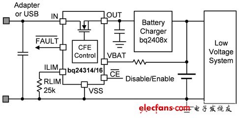 高電壓防護(hù)CFE可將高輸入電壓與低壓充電器及系統(tǒng)相隔離,以免系統(tǒng)出現(xiàn)高電壓。