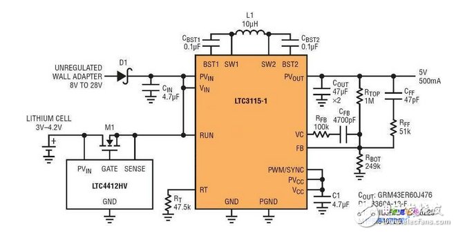 。因此,嵌入式系統(tǒng)的開發(fā)人員喜歡設(shè)計擁有盡可能寬的輸入電壓范圍,從而可在眾多的應(yīng)用和環(huán)境中使用。 電路描述 圖 1 示出了一款提供可靠主電源和支持數(shù)據(jù)備份電源之系統(tǒng)。該解決方案以 LTC?3643 雙向