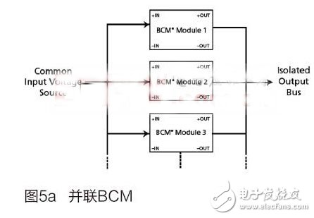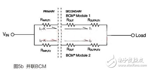 在并聯(lián)BCM模塊的同時(shí),通過(guò)阻抗匹配而不是并聯(lián)信號(hào)實(shí)現(xiàn)均流,很容易連接每個(gè)BCM模塊的輸入和輸出,如圖5a和5b所示。并聯(lián)BCM應(yīng)考慮以下幾點(diǎn):