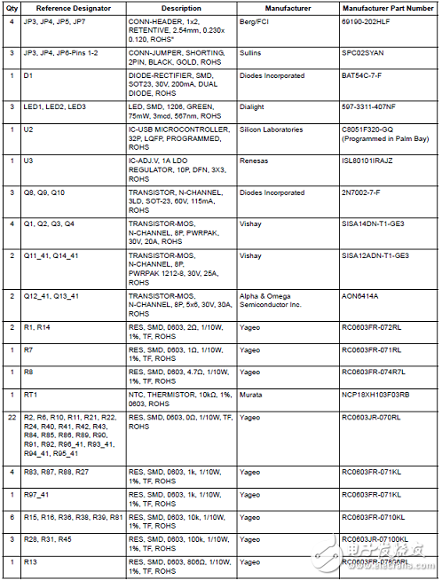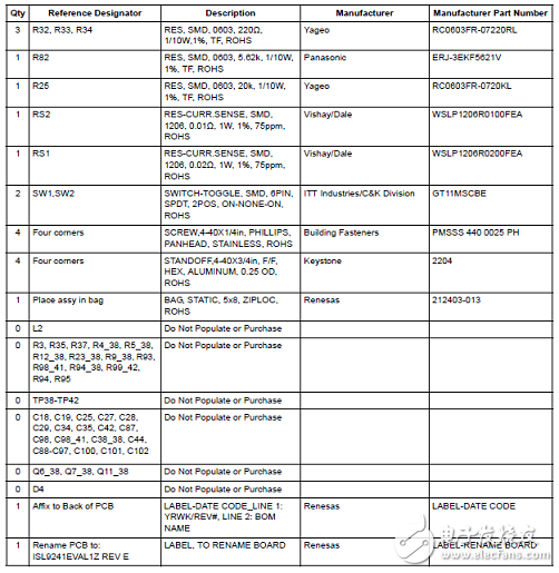 評估板ISL9241EVAL1Z材料清單: