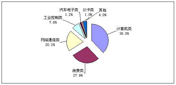 圖2 2004年中國(guó)集成電路市場(chǎng)銷售額應(yīng)用結(jié)構(gòu)