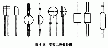變?nèi)荻O管有玻璃外殼封裝(玻封)、塑料封裝(塑封)、金屬外殼封裝(金封)和無引線表面封裝等多種封裝形式、如圖4-18所示。通常,中小功率的變?nèi)荻O管采用玻封、塑封或表面封裝,而功率較大的變?nèi)荻O管多采用金封。
