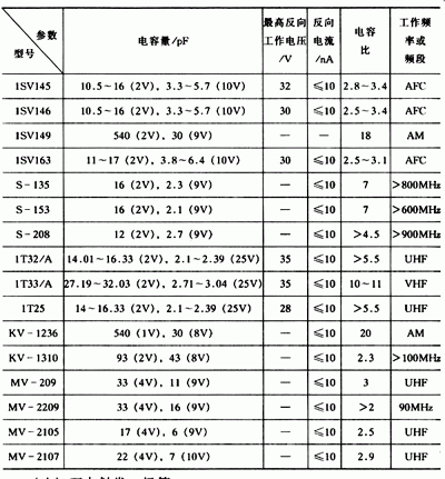 常用的進(jìn)口變?nèi)荻O管有S系列、MV系列、KV系列、1T系列、1SV系列等,表4-24為其主要參數(shù)。