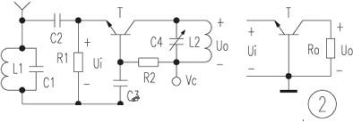 圖1電路工作在低頻時,共基極放大器和共發(fā)射極放大器具有相近的放大倍數(shù)。FM收音機(jī)是工作在100MHz左右的高頻下,此時三極管共發(fā)射極連接時的放大能力大為下降,而共基極時的放大能力卻下降甚少,故高頻時應(yīng)采用共基極放大電路。