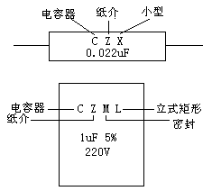 電容的種類也很多,為了區(qū)別開來,也常用幾個拉丁字母來表示電容的類別,如圖2所示。第一個字母C表示電容,第二個字母表示介質材料,第三個字母以后表示形狀、結構等。上面的是小型紙介電容,下面的是立式矩開密封紙介電容。表5列出電容的類別和符號。表6是常用電容的幾項特性。