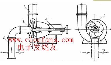 軸流泵的工作原理軸流泵是利用葉輪在水中旋轉(zhuǎn)時(shí)產(chǎn)生的推力將水提升的,這種泵由于水流進(jìn)入葉輪和流出導(dǎo)葉都是沿軸向的,故稱軸流泵。如下