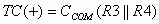 Measurement of Output ImpedanceThere are some simple ways to measure the impedance modulus looking back into the output terminals of the circuit. The measurement of the output impedance of the circuit under test is shown in Figure 3. The input to the circuit under test is grounded.![]() Figure 3. Measure output impedance. Perhaps the obvious approach in Figure 3a is to set the value of RSET at a particular frequency, so that |E2| is ½|E1|. The value shown on RSET is equal to ZOUT of the circuit under test. This is only true if ZOUT is purely resistive at the test frequency. Any reactive component will introduce large errors into this so called "6dB" method. A more accurate approach is to adjust RSET for |E2| 20dB less than |E1|. Then: |ROUT| = RSET / 9 Practically, RSET may be fixed at a value 10x the nominal impedance to be measured. The ratio of E1 and E2 then leads to the value of "ZOUT." If the ratio is made 40dB: |ROUT| is given by RSET / 99 Care needs to be exercised when using the 40dB ratio, as the source voltage could be greater than the breakdown of the circuit under test. This is relevant when low-voltage op amps are under consideration. A second method is to use a suitable network analyser. A third method, specific to active impedance boosting techniques, is to measure the voltage and phase directly across the current-sense resistor RΘ. From the voltage difference, the synthesised output impedance is given by: Referring to Figure 2. ![]() Referring to Figure 2, and taking into account the effect of R3 and R4 in parallel with the output. ![]() The incident or input drive voltage from the test source is VO (in Figure 2), and the reflected voltage from the op amp output is VO' (in Figure 2). A vector voltmeter can be used to extract both amplitude and phase difference. The ratio VO' / VO is further modified by Cos q. The big drawback of this method is the need to identify small voltage differences across RΘ in the presence of relatively large signal levels. DesignThe circuit shown in Figure 2 is chosen when a specified output resistance is required for a very low loss between amplifier and final output. RLOAD and ROUT are both known quantities. RΘ is chosen to be as small as possible, commensurate with overall circuit stability.By how much should RΘ be "boosted"? A practical upper limit is x10 (ie RΘ = 0.1 RLOAD). This will produce a termination loss of 0.83dB. A thorough analysis of each situation should be performed, but some of the variables, such as open-loop output resistance, are difficult to confirm from data sheet specifications. The higher the boost, the more positive feedback is applied, giving rise to reduced phase margins and increased closed-loop distortion. The final choice of "boost" will be a delicate compromise between termination loss and other closed-loop parameters. The operational amplifiers should be chosen to have unity-gain stability. Ensure that the time constant of the negative feedback loop dominates the overall loop control. This means that the positive feedback loop ideally should roll off before the negative feedback loop. Referring to Figure 2, the first-order time constant (TC) of the negative feedback loop is: ![]() The time constant of the positive feedback loop is: ![]() CCOM = Common mode capacitance at + and - inputs of the op-amp. Set TC(-) < TC(+). This assumes that the capacitance at the op-amp inputs is greater than the parasitic capacitance of the feedback loop resistors. In wideband situations it is appropriate to split each of R1-R4 into two equal value resistors to effectively halve the parasitic capacitance. If the circuit does not actually oscillate, there may be in-band response peaking. This can be checked by sweeping the circuit with a small signal (50mV to 100mV) sine wave to identify and plot the closed-loop frequency response (with load), and by correcting any in-band peaking by adjusting the feedback time constants. Example 1600Ω single ended audio cable active termination.Power supply = +5V Gain = 1 (0dB) ROUT = RLOAD = 600Ω. Chose termination loss = 1dB. The MAX4475 op-amp is chosen for its excellent distortion characteristics, bandwidth, and output drive capability. It is also unity-gain stable. ![]() ROUT = RLOAD, and Gain = 1. ![]() RLOAD = 600R for test purposes, and RΘ = 75R as nearest preferred value. RΘ = 0.125RLOAD. R2 = 0.25R1 Let R1 = 10k, then R2 = 2.5k. Use R2 = 2.4k + 100R. Then: ![]() given that RΘ, and RLOAD = ROUT as shown above. This ratio provides the boost to RΘ. R4 = 0.428R3. Let R3 = 10k. Then R4 = 4.28k. Use R4 = 4.3k. ![]() Figure 4. Example 1 (Power supply decoupling not shown for clarity). Table 1. Gain vs. Frequency [0dB = 137.5mVRMS]