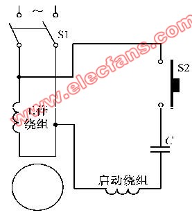 最普遍使用的單相異步電動機是電容分相式的,電動機有2個繞組,啟動電容與其中一個電容