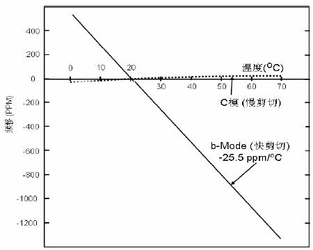 7978 在切角=22.5=34.11雙轉(zhuǎn)角石英片的應(yīng)力系數(shù)為零,這種切型的諧振器被稱為SC切型諧振器,即應(yīng)力并補(bǔ)償型諧振器,該諧振器的頻率溫度特性如圖所示: 諧振器的頻率溫度特性圖 由于SC切諧振器具有應(yīng)力