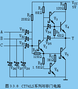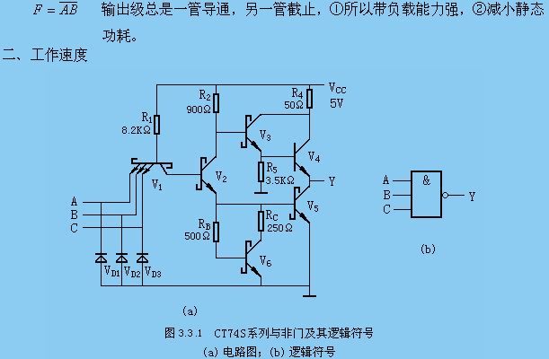 (2)輸入級的多發(fā)射極管V1改用沒有電荷存儲效應的肖特基勢壘二極管SBD代替。這 樣,在輸入信號變化時,瞬態(tài)響應快,提高了工作速度。