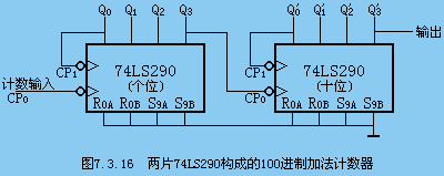 兩片接成十進(jìn)制的CT74LS290級聯(lián)組成10×10=100進(jìn)制異步加法計(jì)數(shù)器。