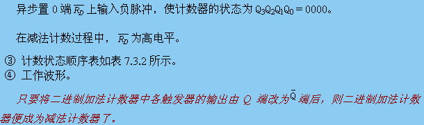表7.3.2 四位二進(jìn)制減法計(jì)數(shù)器計(jì)數(shù)狀態(tài)順序表