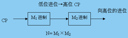 計(jì)數(shù)器的級聯(lián)是將多個(gè)集成計(jì)數(shù)器(如M1進(jìn)制、M2進(jìn)制)串接起來,以獲得計(jì)數(shù)容量更大的N(=M1×M2)進(jìn)制計(jì)數(shù)器。
