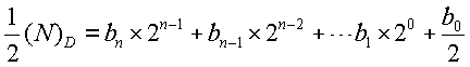 這樣又得到了一個20項,也就是b-2也將再次被從式子中剔除,但同時也就產(chǎn)生了二進(jìn)制小數(shù)的前兩位。重復(fù)上述過程,直到 滿足要求的位數(shù)時做“四舍五入”,也就完成了從十進(jìn)制小數(shù)到二進(jìn)制小數(shù)的轉(zhuǎn)換。